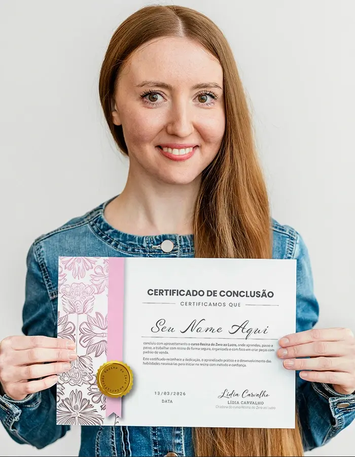 Ao finalizar o curso Resina do Zero ao Lucro, você recebe um certificado de conclusão que representa mais do que aulas assistidas.